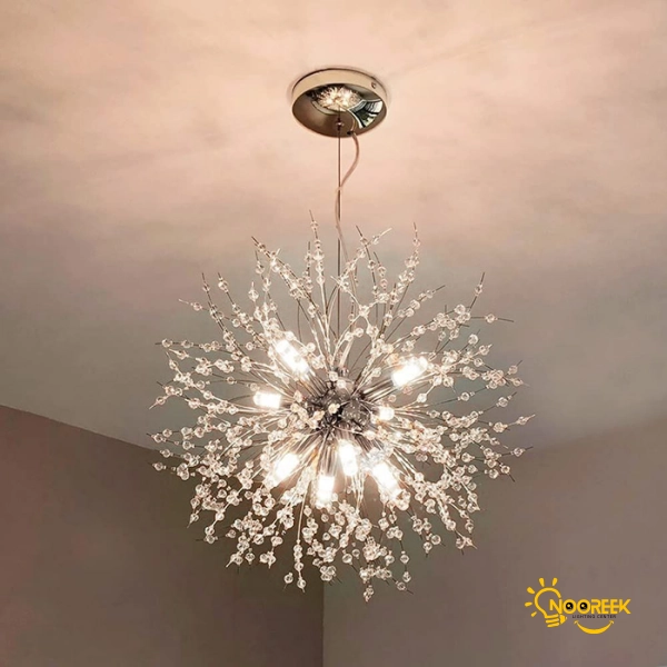 ترکیب بدنه فلزی براق با شیشه یا کریستال، جلوهای چشمگیر و درخشان به محیط میبخشد و میتواند بهعنوان نقطه کانونی در طراحی داخلی ایفای نقش کند. این ویژگی باعث میشود حضور آن در هر فضا، علاوه بر تأمین نور کافی، به دکوراسیون شما روحی تازه و جلوهای لوکس ببخشد.