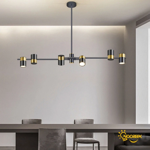بهویژه در فضاهایی که طراحی ساده و مدرن در اولویت قرار دارد، این لوستر میتواند جلوهای شیک و مدرن به محیط ببخشد و آن را به یک نقطه کانونی تبدیل کند. طراحی خطی و ظریف آن باعث میشود که این لوستر برای فضاهای کوچک و بزرگ بهطور یکسان مناسب باشد.