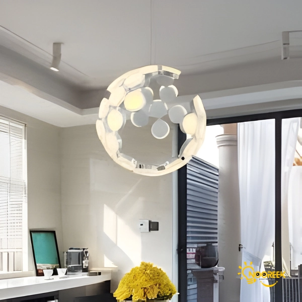 لوستر پذیرایی مدل اسکوپاس با بدنه طلایی و سفید رنگ خود، نوری آفتابی و ملایم ایجاد میکند که محیط شما را روشن و دلپذیر میسازد. لامپهای SMD بهکار رفته در این لوستر با مصرف انرژی ۲۱۰ وات، نوری قوی و یکنواخت تولید میکنند که باعث میشود فضا روشن و جذاب باشد. این میزان روشنایی بالای محصول، بهویژه در فضاهای بزرگ بهخوبی عمل میکند و نوردهی کاملی را فراهم میآورد. در نتیجه، این ویژگی باعث میشود که لوستر پذیرایی اسکوپاس یک انتخاب ایدهآل برای سالنهای پذیرایی، لابیها، اتاقهای نشیمن و فضاهای تجاری باشد. طراحی توپی این لوستر که الهام گرفته از کلونی زنبورهای عسل است، جلوهای هنری به آن میبخشد و به آن یک زیبایی خاص و مدرن اضافه میکند.